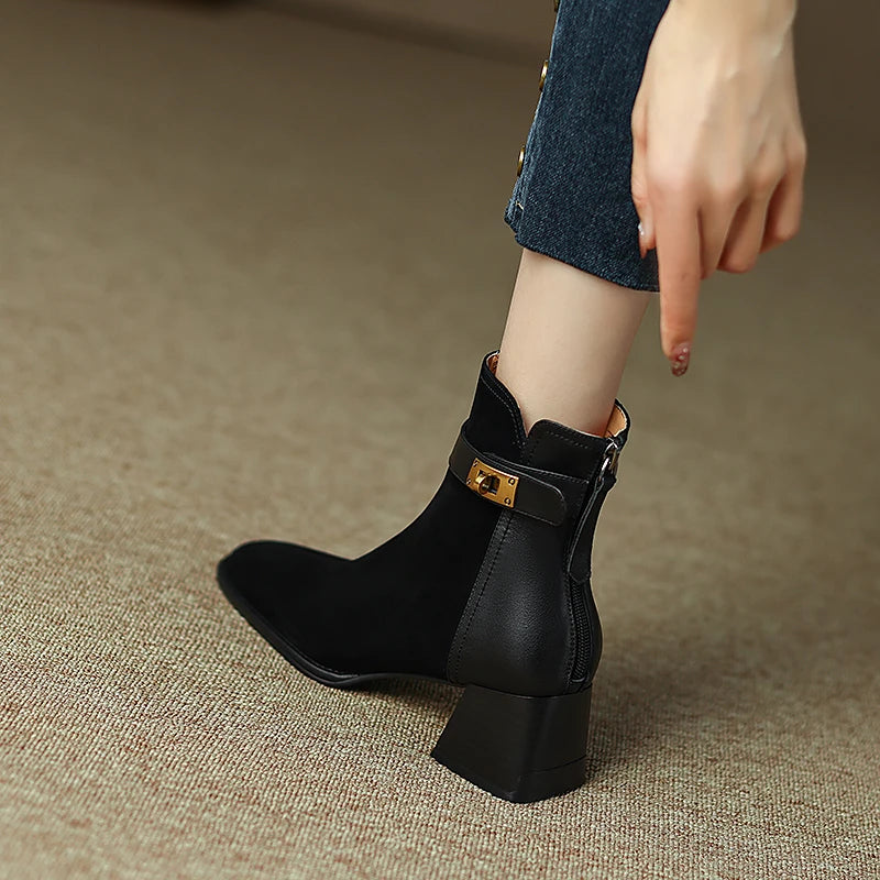 Designed with a sleek, smooth suede upper and our signature Era buckle statement piece, these chic boots feature a stacked heel and a refined squared toe. Engineered with an arch-supported sole for all-day comfort.
